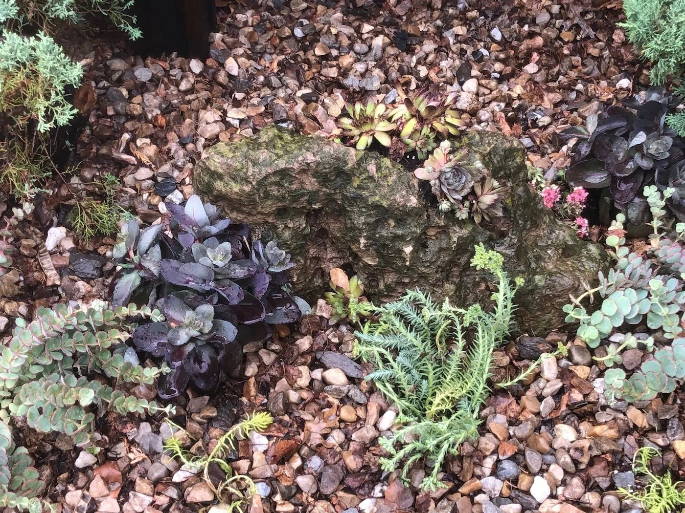 By far, Sedum ‘Dark Magic’ was one of my best discoveries. I used it in a rock garden planting (see photo below) and paired it with other sedum varieties. I’m drawn to dark-leafed sedums, but most of the ones I’ve planted have had floppy, sloppy growth habits. This one, however, is much tidier, a bit shorter (12–15”), and has much stronger stems.